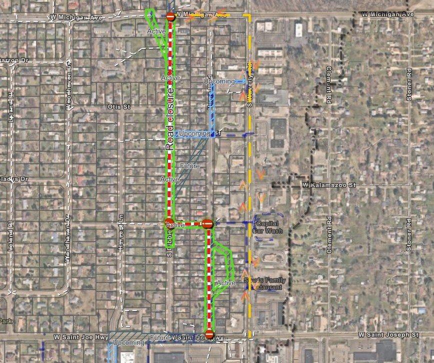 W. Saginaw Highway has a single lane closure for westbound traffic between Clark and Robbins roads, Monday-Friday. There is no lane closure on Saturdays and Sundays.